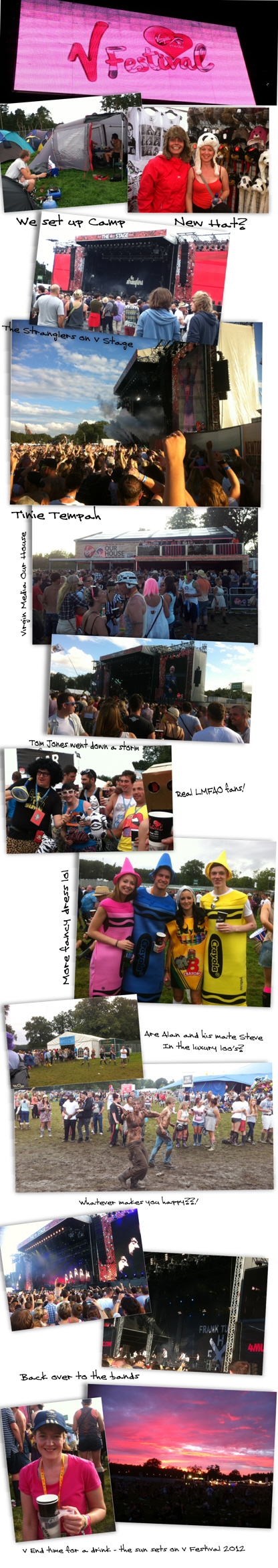 Checklist of festival do’s and dont’s consulted from the V festival website, sun cream, festival hat, wellies and tent packed – it was time to start a great weekend of music and entertainment at V festival 2012.