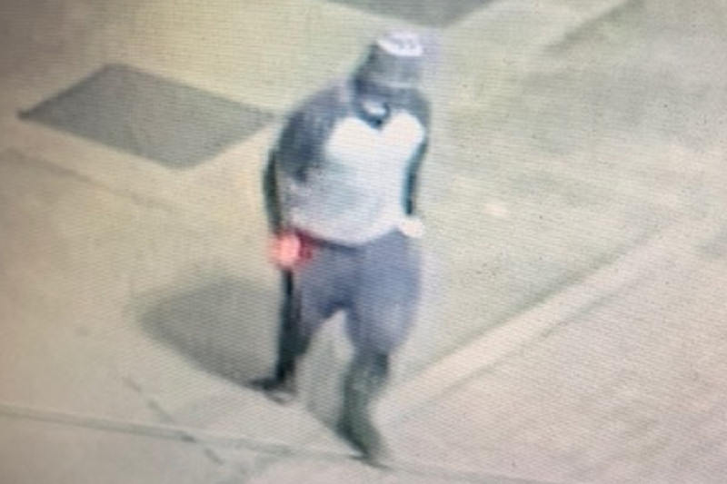 He wore a balaclava, black sports jumper with a grey patch on the front, grey tracksuit bottoms and dark coloured trainers. He was wearing gloves one of which was bright red.